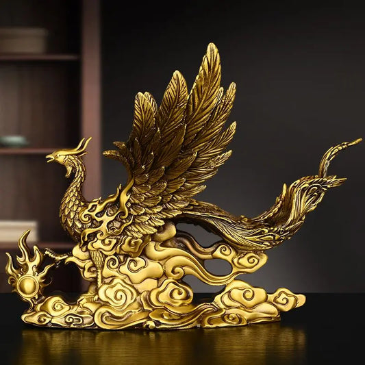 Full Copper Phoenix Statue – Auspicious Living Room & Housewarming Decoration
