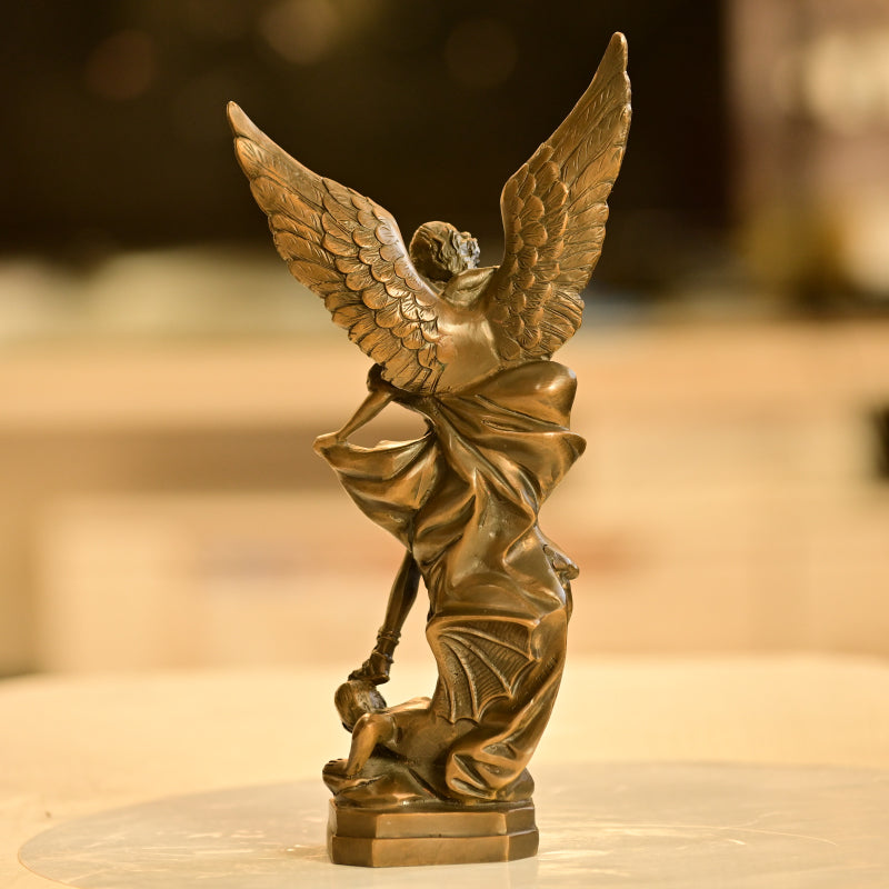 Saint Michael the Archangel Brass Statue Defeating Evil