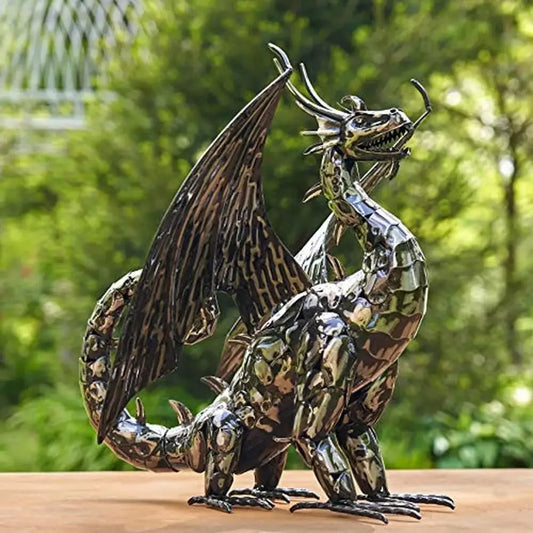 Black-Metallic Dragon Iron Statue – Hand-Painted Freestanding Outdoor Metal Art Sculpture