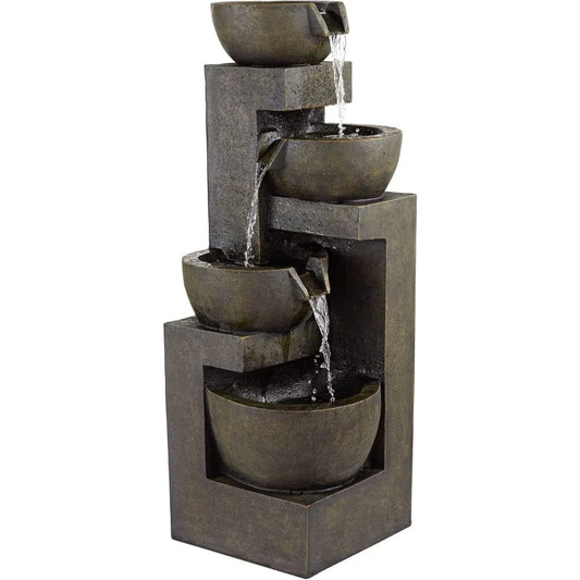 32.8" 4-Tier LED Lighted Outdoor Water Fountain – Resin Garden Waterfall Feature for Patio, Deck &