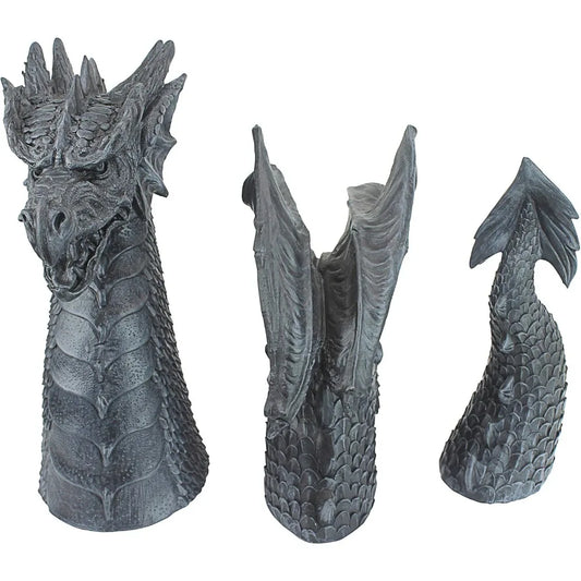 The Dragon of Falkenberg Castle – 28-Inch Moat Garden Statue in Gray Stone Finish