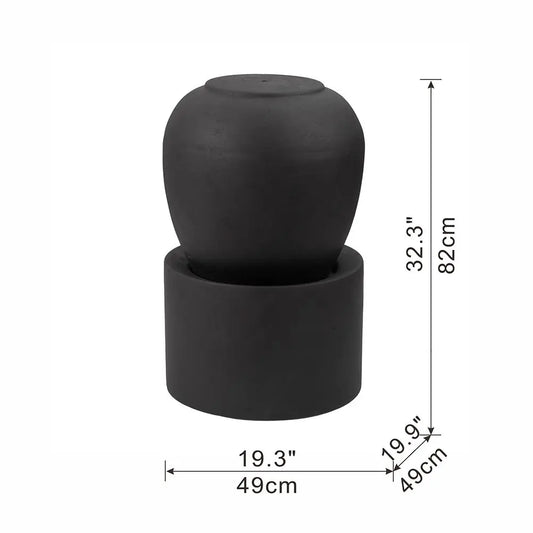 Modern Black Cement Outdoor Fountain – Unique Urn Design Water Feature for Garden, Patio, Lawn, and Deck (19.5 x 19.5 x 32.5")