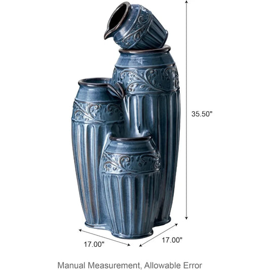Ceramic Outdoor Water Fountain with LED Lights – Classic 4-Tier Pot Design for Garden, Patio & Yard Decor 39"